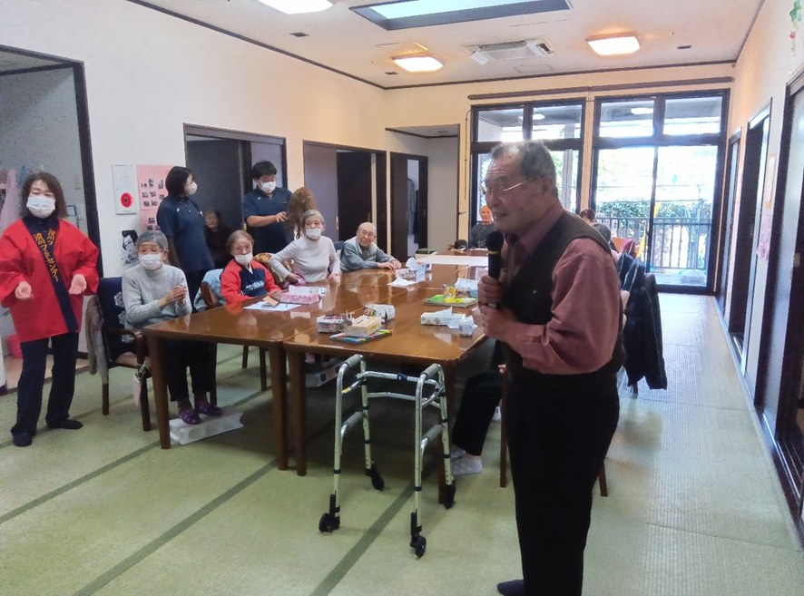 職員・お客様によるカラオケ大会、職員によるドジョウ掬い・傘回しを行いました。
