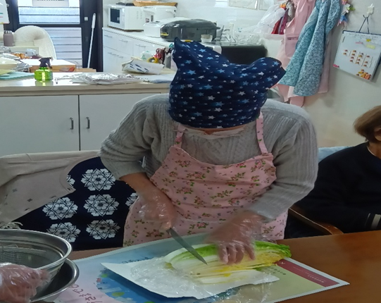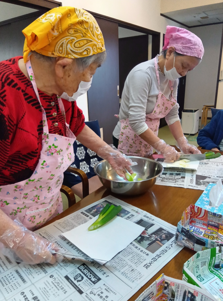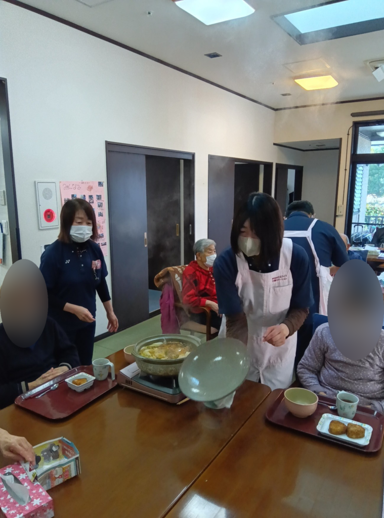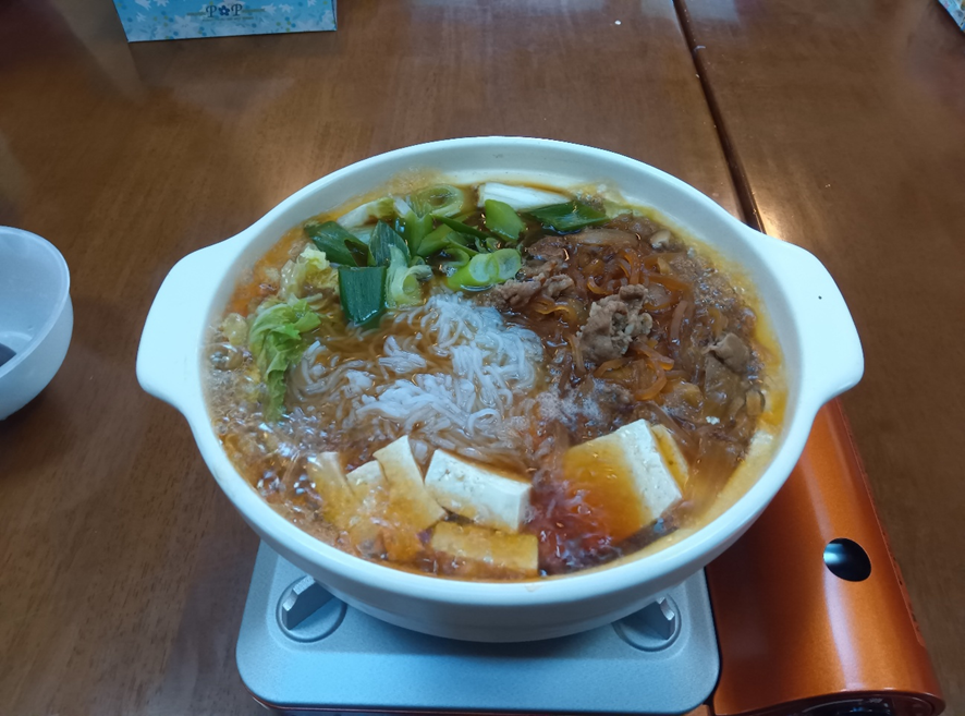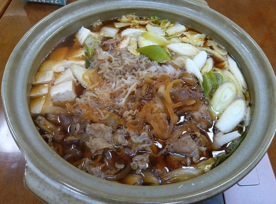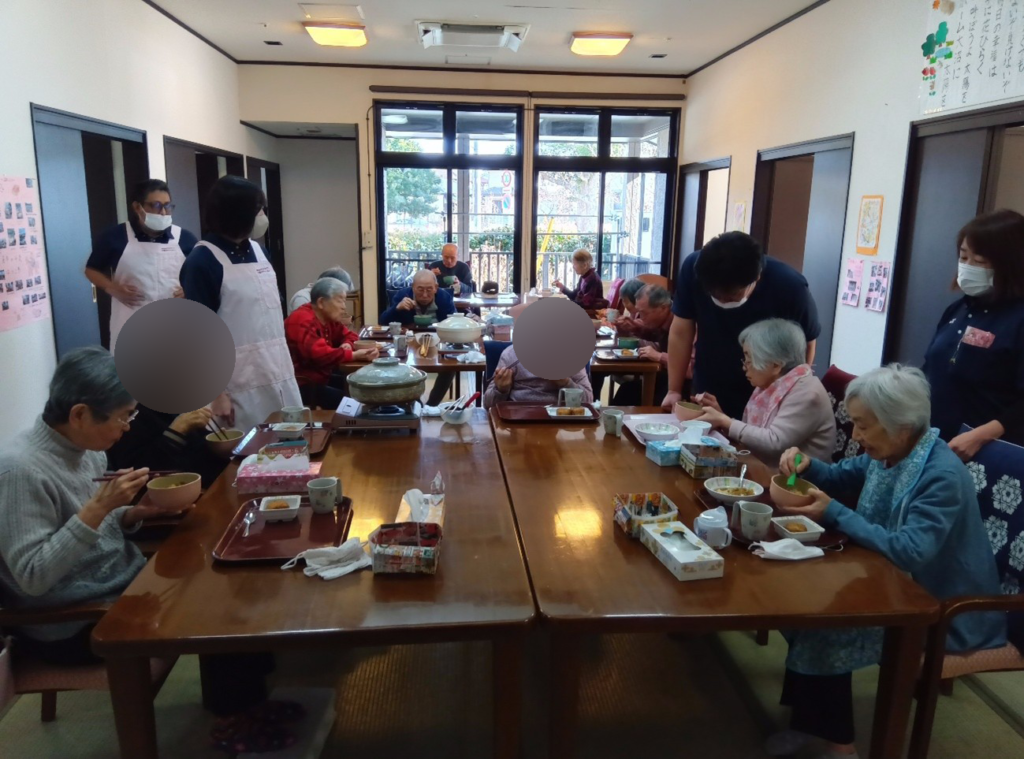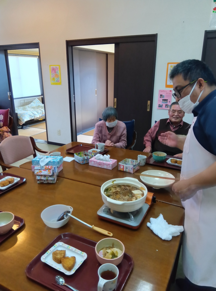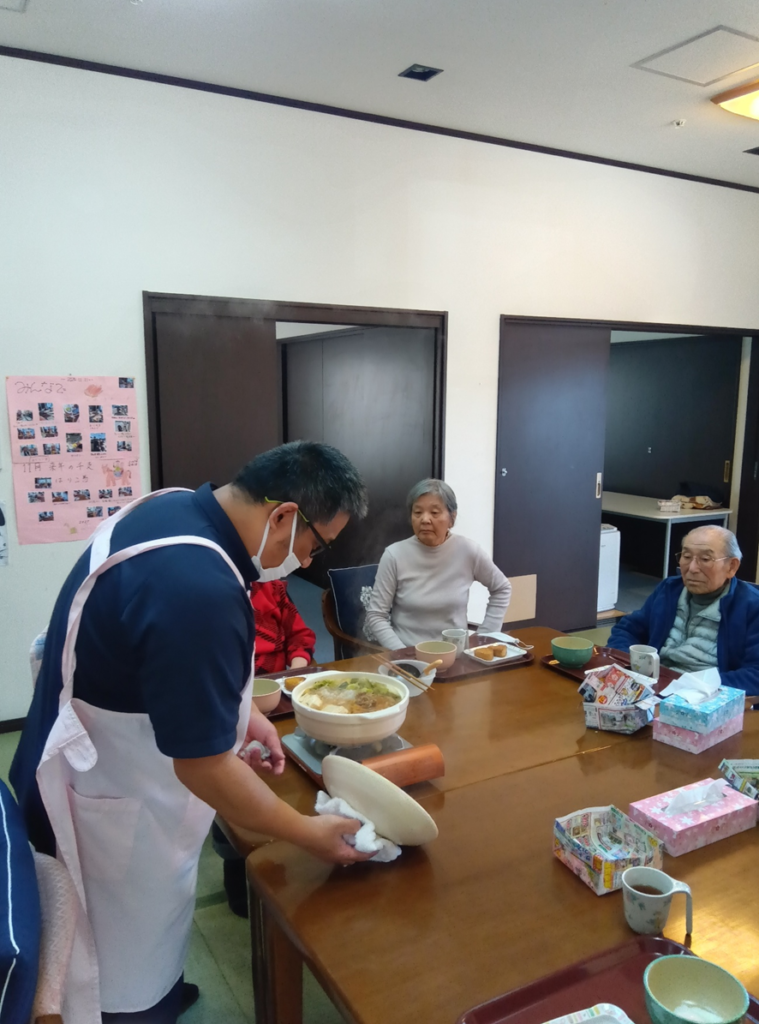 お客様に具材を切って頂きすき焼き鍋にしました。皆さんおいしそうに食べおかわりを何杯もされていました。