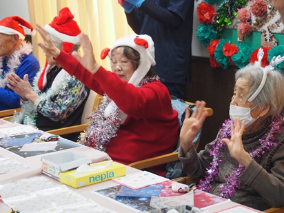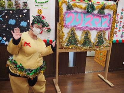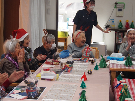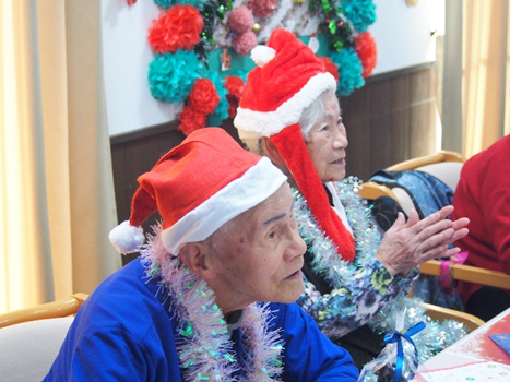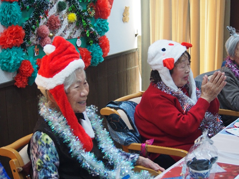 施設長とスタッフによるクリスマスソング!!登場した瞬間歓声が上がりまさにアイドル !笑