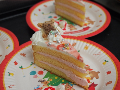 最後に施設長サンタとトナカイスタッフによるケーキを口キャッチチャレンジが始まりました!!