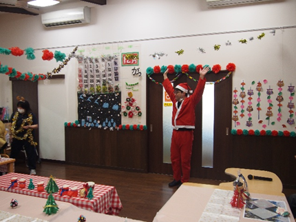 一投目、、、施設長必死でケーキを探すもない???トナカイのフェイントでサンタさんはポカーン🎅