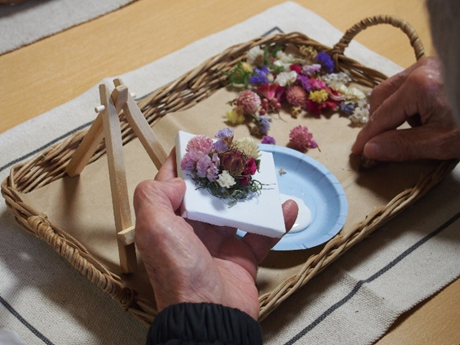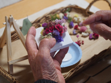 自分の好きなお花などをキャンパスに貼り付けていきます。