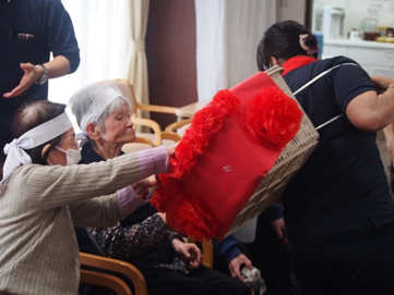 白組のところに赤組のかごが来て「間違えて入れちゃった・・・」