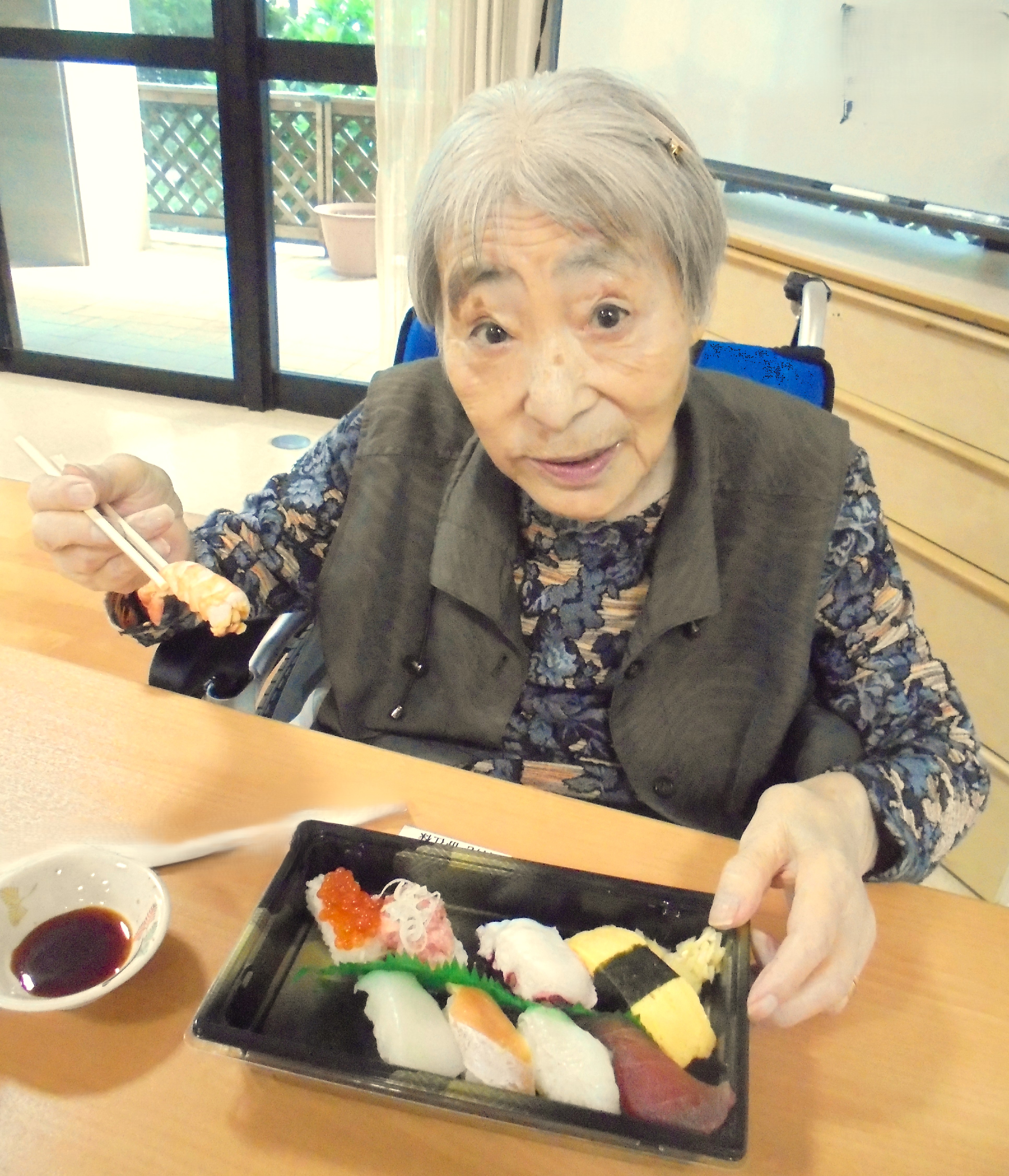ナーシングケアレジデンスで敬老会を行いました! スタッフによるジャグリングを披露させていただきました お客様も挑戦!大成功です! 楽しんだ後はお食事、 お寿司や海鮮丼など、みなさんお好きなものを選んで召し上がりました。
